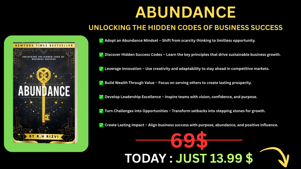 In Abundance: Unlocking the Hidden Codes of Business Success, acclaimed author and business strategist R.H Rizvi reveals a groundbreaking blueprint to transform your business by aligning with the powerful principles of abundance. This is not just another book on making money. It’s a transformative guide to reprogramming your mindset, redefining your goals, and unlocking the untapped potential that already exists within and around you.